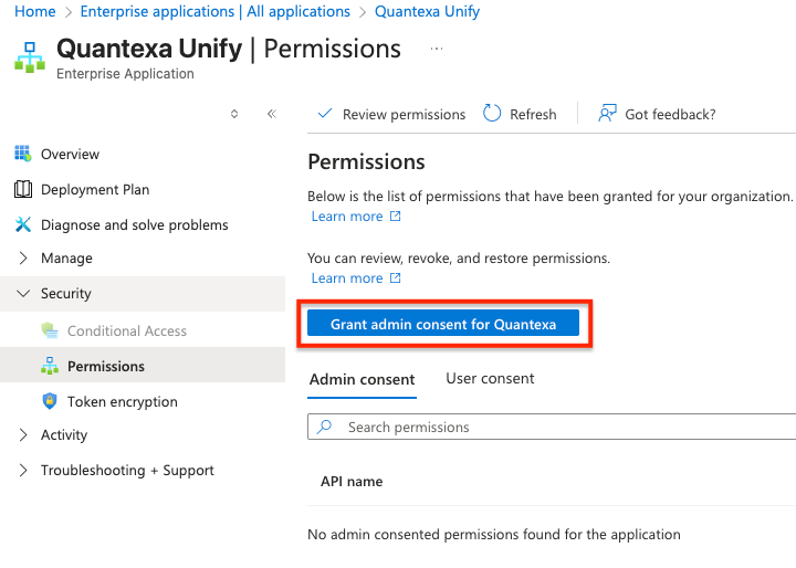 - After clicking Accept, the workload creates a Quantexa Unify Enterprise Application in your Azure tenant.